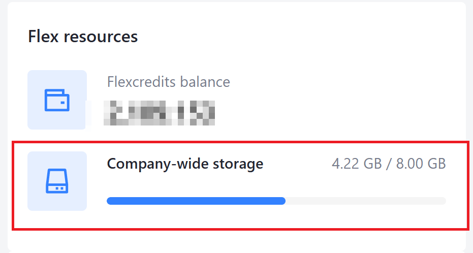 Note: The company-wide storage limit is available depending on your customer agreement. If you do not see this widget, your account uses the standard per-use billing model. Contact Flexcompute support for more information.